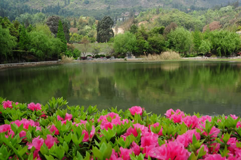 一泓清池,造化所賜,池水可掬,青山可枕。掬水枕山,精妙此地,青山拱衛(wèi),蔥翠如碧。一泓清水自然生成于此,可謂天賜的神來之筆。環(huán)湖漫步,野生的老梅樹干橫盤虬曲,剛勁而蘊(yùn)含生機(jī);錯(cuò)落的數(shù)株紫瓣玉蘭,不經(jīng)意散發(fā)著淡淡馨香,幾只水鳥在池中浮萍上悠閑漫步 ,將紅塵的浮燥消弭得無影無蹤。