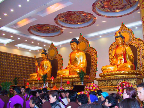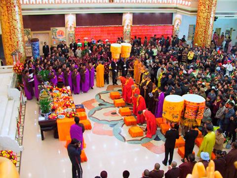 金寶塔每日進(jìn)行早晚課,繞佛誦經(jīng)。