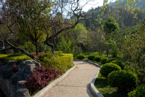 青山巍然在后,兩側(cè)山林圍合,前方是天池的一泓清水,蒼松翠柏之中,錦庭花園若隱若現(xiàn)。在大氣磅礴大氣的金寶山藝術(shù)園林中,40多畝的錦庭花園猶如一個精致的私家花園。