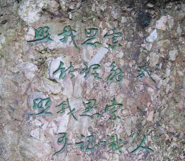 我們一行三人沿著沱江一直往下游行走,終于來(lái)到了一塊簡(jiǎn)陋的石頭旁,上面刻著四行淺淺的字:照我思索,能理解“我”;照我思索,可認(rèn)識(shí)“人”。正準(zhǔn)備留影紀(jì)念,再繼續(xù)去尋找沈從文墓。一個(gè)戴斗笠的人走過(guò)來(lái),朝我們連連擺手。我們一看,是一人力車(chē)夫,仰起臉微閉著眼睛,嘴角一抽一抽地說(shuō):“你們是來(lái)找沈從文墓的吧?此處便是沈從文墓!”我們一齊驚呼出聲:“?”他的眼光均勻地掃過(guò)我們,然后又微閉起眼睛,嘴角一抽一抽帶出白沫來(lái)說(shuō):“你們的驚訝也不足為奇,許多慕名而來(lái)的文學(xué)愛(ài)好者,都是因?yàn)闆](méi)有導(dǎo)游指點(diǎn),都是去聽(tīng)濤山上找了一回,沒(méi)有找到他心目中的墓地,然后失望而歸甚至發(fā)出質(zhì)疑,說(shuō)沈從文墓并不存在而是個(gè)騙局。其實(shí),是他們錯(cuò)過(guò)了沈從文墓,他們沒(méi)有想到一代文豪,當(dāng)年叱咤文壇風(fēng)云的沈從文,他的歸宿地是如此簡(jiǎn)樸乃至寒磣。”