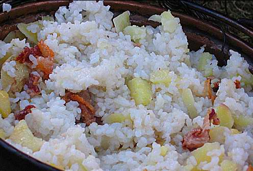 注意千萬不要繼續(xù)用火,不然飯就焦了。如果在第8步驟水分不夠的情況下,請(qǐng)把鍋內(nèi)的飯用你的刀或者是飯勺插幾個(gè)洞,再加入適量的水重復(fù)這個(gè)步驟就可以了。