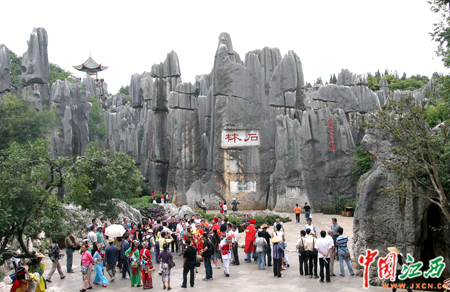 7日下午,首屆中國網(wǎng)絡媒體云南行記者團一行來到昆明市石林景區(qū)參觀。(中國江西新聞網(wǎng)記者 鄧小勇 攝)