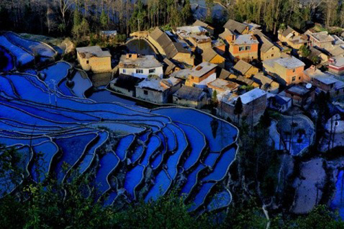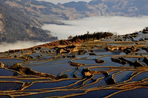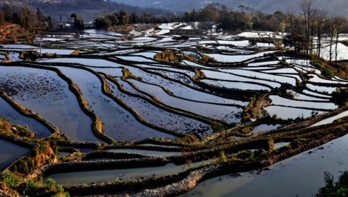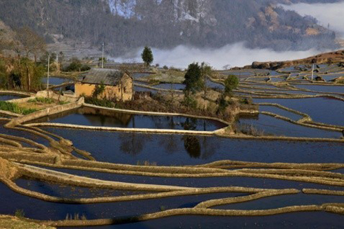 看到許多描寫(xiě)元陽(yáng)梯田的攝影作品,可是一旦面對(duì)還是有點(diǎn)震撼。那不是大自然的鬼斧神工,而是人類(lèi)絕處求生存,在大地上刻畫(huà)出的雄偉樂(lè)章。過(guò)去一直認(rèn)為中原,黃河流域是中華民族的發(fā)祥地,現(xiàn)在這種觀點(diǎn)悄悄地改變了。北京猿人距今70萬(wàn)年、陜西藍(lán)田猿人距今80萬(wàn)年、而云南元謀猿人距今170萬(wàn)年。云貴,滇中高原才是中華民族的發(fā)源地。古代百越人是種植水稻最早的民族。