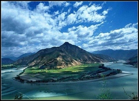 金沙江第一灣: 奔騰不息的江水流到這里需要喘息,拐過(guò)一個(gè)大彎之后才向著遠(yuǎn)方前行。