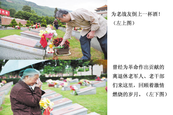 一身戎裝、胸前綴滿獎章的黃龍生老人1951年從玉溪江川縣入伍,10年的軍旅生涯,改變了黃龍生老人的生活軌跡,也讓他格外看重戰(zhàn)友情誼。“我曾是陳康將軍的老部下。自從他安葬在金寶山的軍魂園后,我每年八一建軍節(jié)前,都要到這里來祭奠他。敬個軍禮、獻束鮮花,就代表著一個老戰(zhàn)士對昔日老首長的深切追思。”黃龍生老人表示。