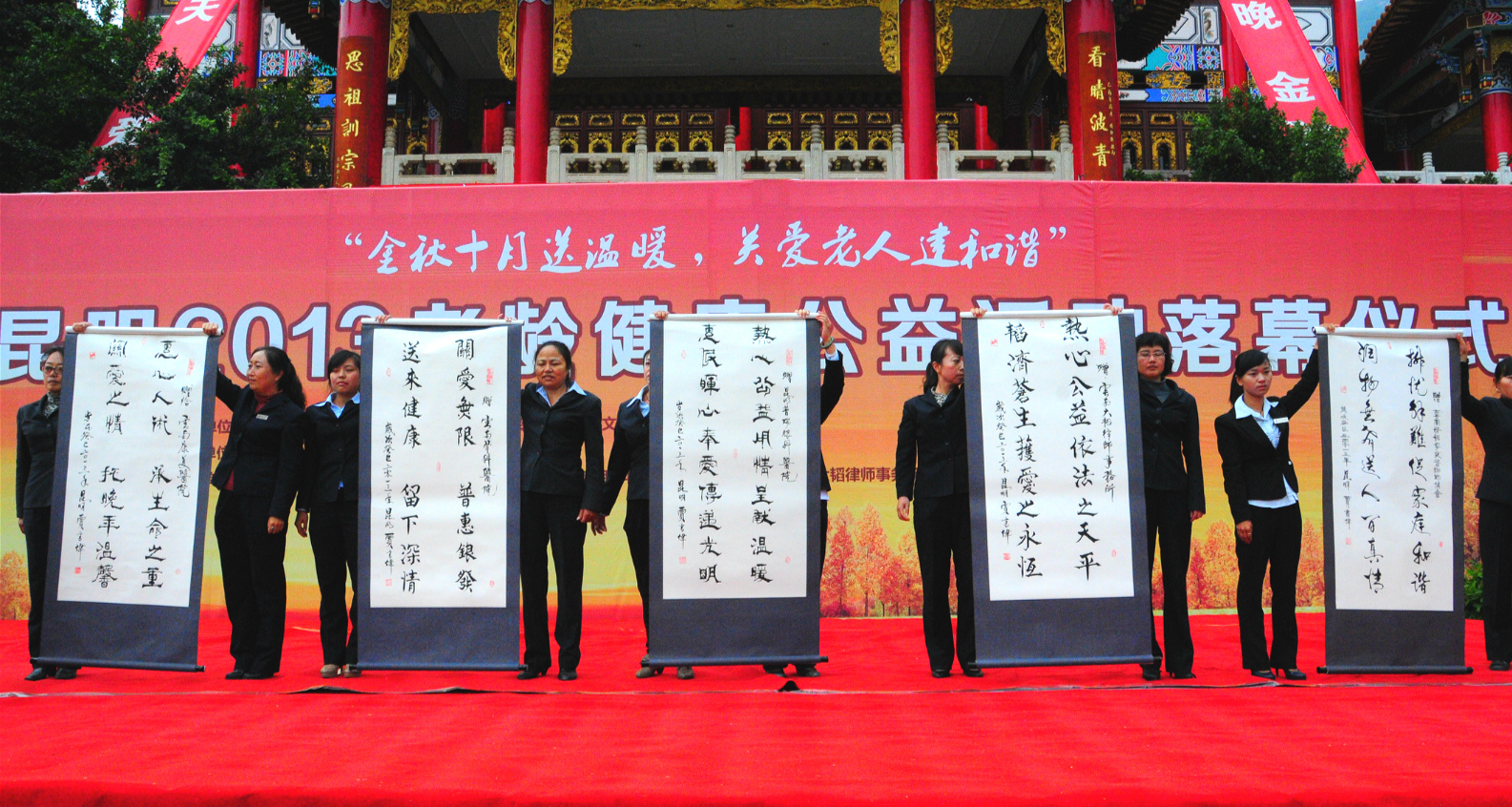 莫道桑榆晚,春城霞滿天。10月16日,“金秋十月送溫暖,關(guān)愛老人建和諧”昆明2013老齡健康公益活動在金寶山藝術(shù)園林舉行閉幕儀式。過去近兩個月時間里,活動先后進入30個社區(qū),把公益服務送到了老年人的家門口,為2.4萬老年人提供義診和咨詢,免費發(fā)放《老年人權(quán)益保障法》1.8萬本。為慶祝中國第一個法定老年節(jié)來到,昆明2013老齡健康公益活動以關(guān)注老年人身心健康為主要形式,長時間深入多個社區(qū),以生動、豐富的活動,在今秋給春城老年人送去了別樣的溫暖。