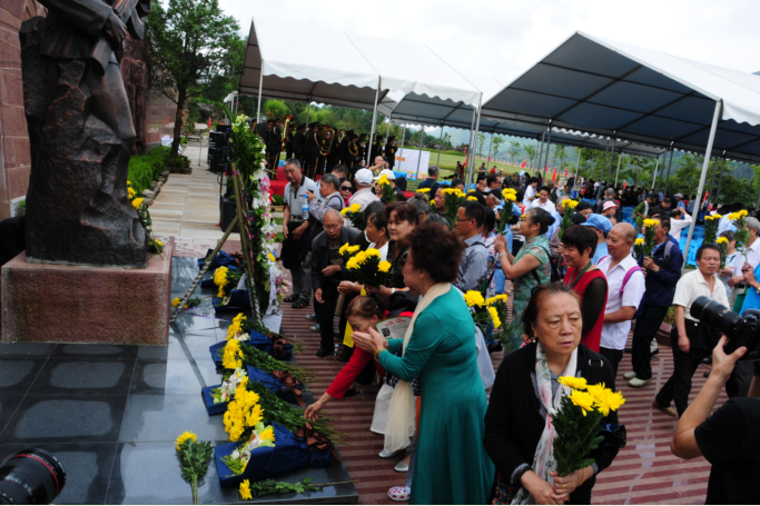合唱結(jié)束之后,人們領(lǐng)取鮮花,跟隨禮儀隊向英雄雕塑獻(xiàn)花。本次活動內(nèi)容還包括展覽、座談會、慰問信等內(nèi)容,這些別開生面的主題活動,用多種形式詮釋了金寶山對軍魂的理解,對奉獻(xiàn)終身的革命先輩的敬意。