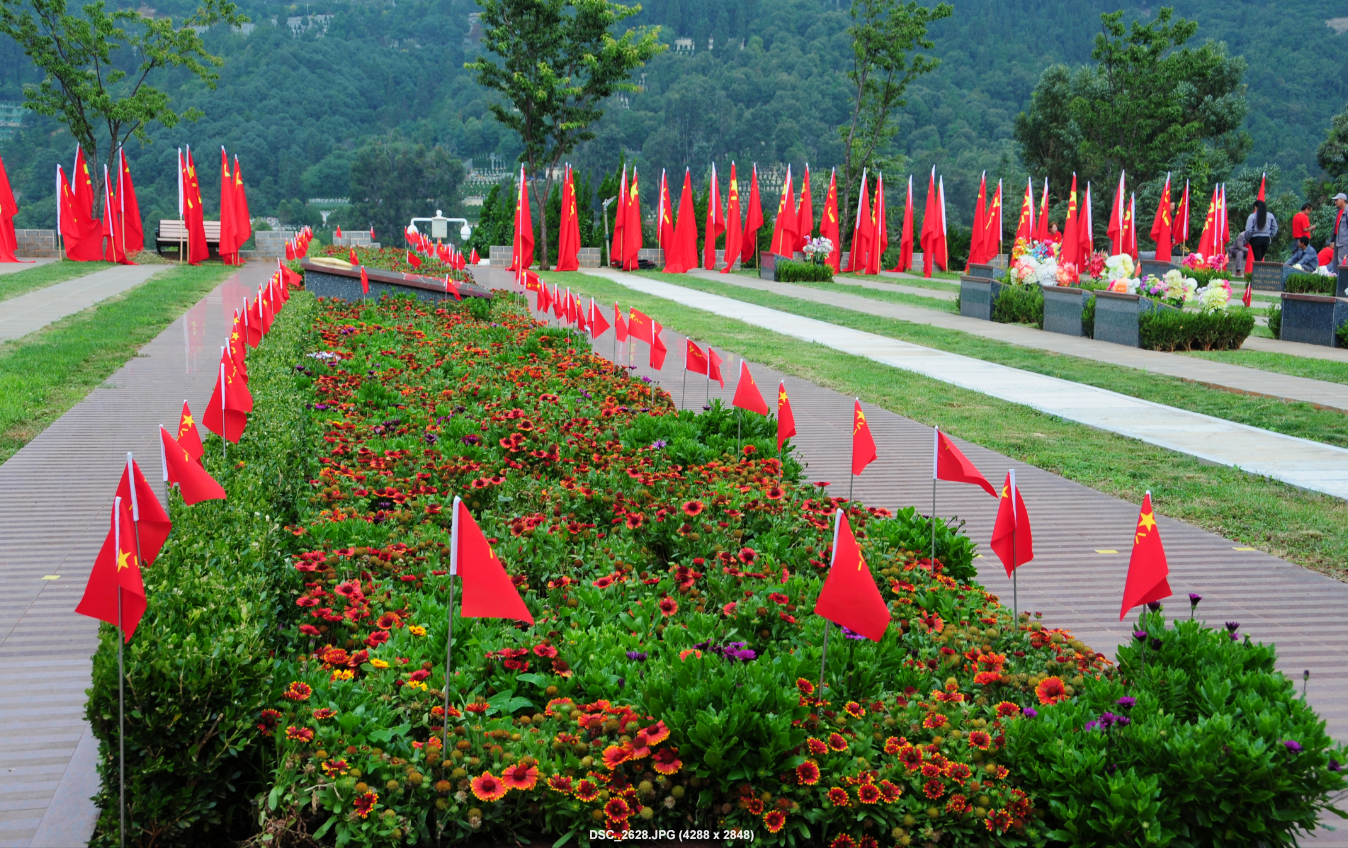 當(dāng)天的金寶山,每座墓前都插上了小軍旗,在軍魂園、忠誠衛(wèi)士英烈廣場、忠魂園,鮮紅的大軍旗迎風(fēng)飄揚(yáng),整個(gè)園區(qū)莊嚴(yán)肅穆。