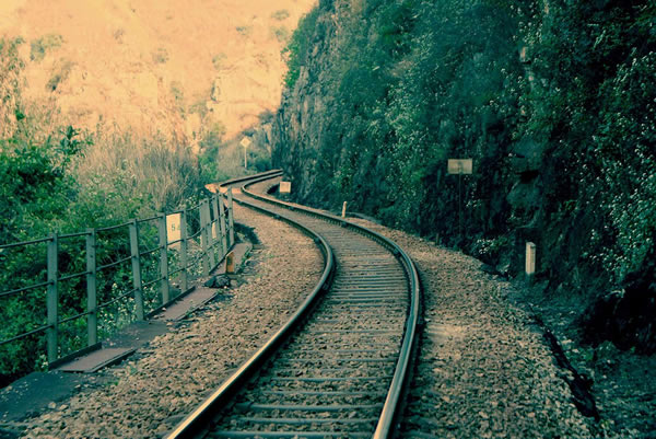 插圖12:鐵路沿著險(xiǎn)峻山勢(shì)繞行