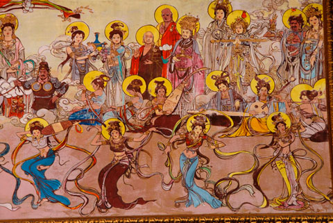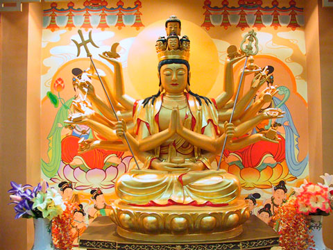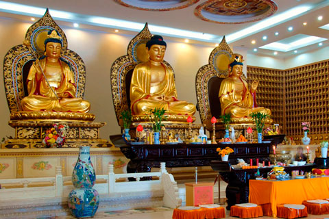 一千二百平方米的佛事大殿金光燦然,層高達(dá)十米,其博大、莊嚴(yán)與恢宏,實為罕見