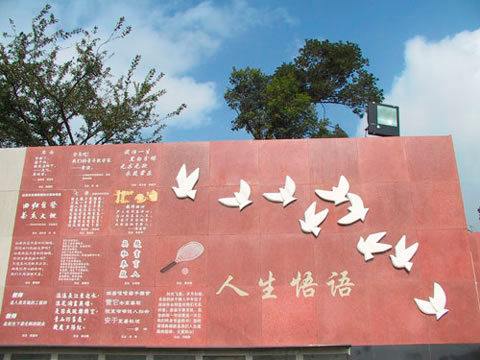 教師園的建設思想體現(xiàn)著“尊師重教”主題,一景一畫力求突出教師崇高的職業(yè)特征。教師園前景開闊、氣勢宏大,園區(qū)占地5000平方米,主景墻長一百二十米、高四米六,居中象征知識之門的漢白玉雕塑,用以書本為基座的巨型鋼筆裝飾造型,鮮明展示了“知識就是力量”的創(chuàng)意。兩側(cè)壁面上鐫刻著毛主席寫給革命老人徐特立的名言:你是我二十年前的先生,你現(xiàn)在仍然是我的先生,你將來必定還是我的先生。鐫刻著對教師職業(yè)特征的十種感人表述;鐫刻著幾部描述教師奉獻生涯的精典小說、影視作品摘要;鐫刻著老一輩教育家陶行知、聞一多等人的頭像;鐫刻著中國歷史上著名的教育家名錄。園區(qū)充滿濃郁的文化氛圍,構(gòu)成獨有的教育思想和文化景觀。