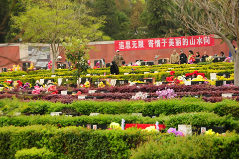 天頤園是金寶山首個(gè)茶園式風(fēng)格的墓區(qū)綠化嘗試,綠化特點(diǎn)是在墓位后面配置一排排綠籬,這些修剪整齊的綠籬恰如一排排椅背遮擋了墓碑,看上去好象是一片依山而下的茶園。在綠化樹(shù)種方面精心選擇了不同的植物,形成一個(gè)個(gè)色彩繽紛的區(qū)域,使墓區(qū)宛如一個(gè)多彩紛呈的大花園。綠籬的顏色隨著季節(jié)不同而發(fā)生變化,使得一年四季都顯得充滿(mǎn)生機(jī)。天頤園的墓型本著精巧實(shí)用的原則,有多種造型提供選擇,滿(mǎn)足了客戶(hù)的不同需求。天頤園這種茶園式的建設(shè)風(fēng)格,受到客戶(hù)的普遍歡迎,也廣受同行的好評(píng)。