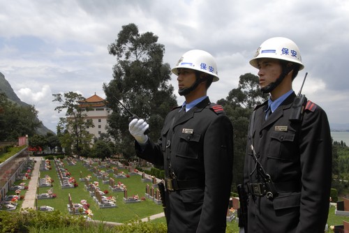 保衛(wèi)部 為了維護園區(qū)安寧,全部由退伍軍人組成的保衛(wèi)部,二十四小時承擔著安全保衛(wèi)任務(wù),無論是固定哨位還是巡邏查看,他們始終保持著警惕的目光。園區(qū)范圍廣大、樹林茂密,除了先進的視頻設(shè)備,保衛(wèi)處還配備了機動巡邏車輛,以技防和人防的合理組合,在安全和防火兩個方面,確保了生命公園的平安祥和。