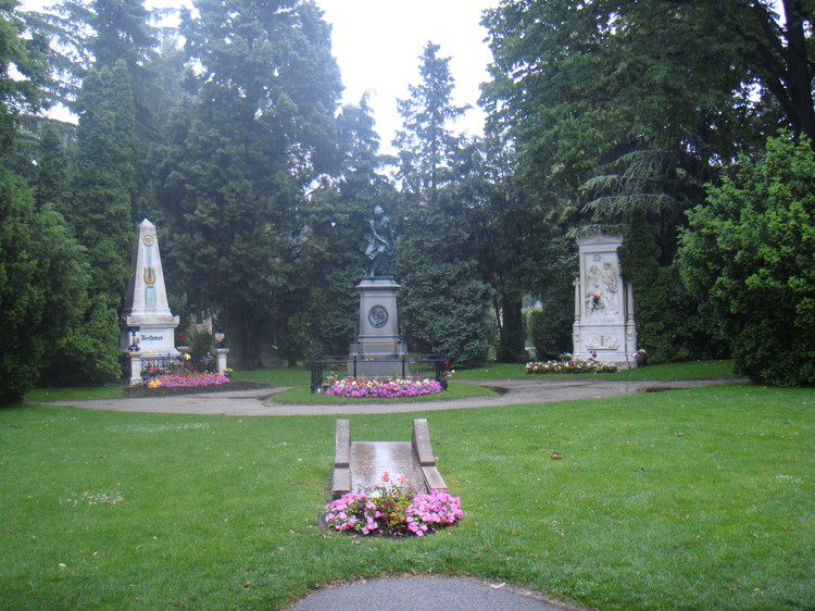 在一片碧綠的草坪之中,在眾多茂密的樹木屏護之下,眾多的音樂家安息于此地。
