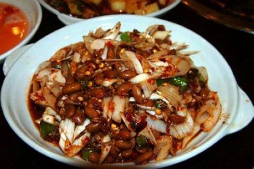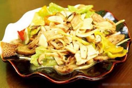 昆明名菜之一。用青辣椒、紅辣椒加蒜片與松茸片相炒,以肉湯加濕淀粉勾芡,白中綴紅綠,清香味醇厚。 小知識:有“菌中之王”美稱的松茸,肉質(zhì)細嫩,甜潤甘滑,有一種特殊香味,日本人還來這里收購,據(jù)說能延年益壽。