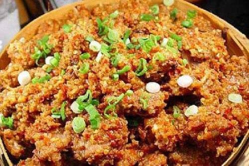 骨鲊。施甸民間入冬時節(jié)千家萬戶必備的傳統(tǒng)腌制食品之一。采用新鮮豬排、脊骨及少量腸、肚砍剁成均勻的團狀,然后加入多種香料拌揉至透,填壓入罐(瓶),再用豬油密封置于陰涼處,一般三個月后即可加熱食用。成熟的骨鮮骨質(zhì)酥松,色澤鮮紅透亮,油而不膩,鮮味淳厚,爽口開胃,別具風味。若與白豆腐一同燉吃,則色相更佳,口感亦好。如今,已有產(chǎn)家批量生產(chǎn)投放市場,從而使這一方域風味四方流香。所惜產(chǎn)品之“骨感”似太強了些,故雖“風味”十足,卻略乏豐腴,距傳統(tǒng)佳品也就差了那么一丁點。