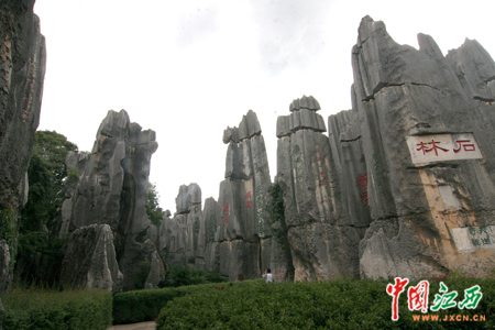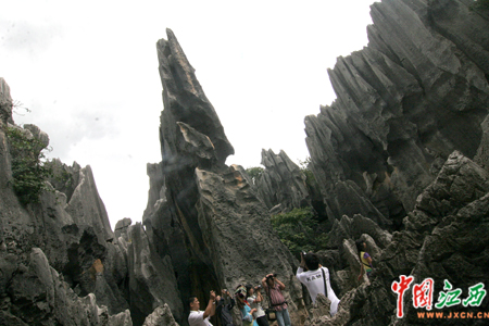 雖然在電視和圖片上看到過石林的風貌,但林林總總的怪石成片一下子出現(xiàn)在眼前時,記者還是被這些突兀崢嶸、千姿百態(tài)的石林奇觀給震住了。