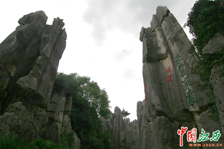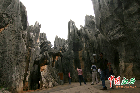 7日下午,首屆中國網(wǎng)絡媒體云南行記者團一行來到昆明市石林景區(qū)參觀。(中國江西新聞網(wǎng)記者 鄧小勇 攝)