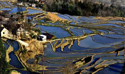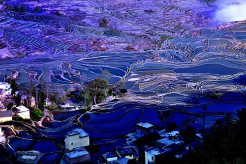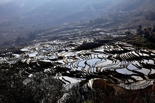 看到許多描寫(xiě)元陽(yáng)梯田的攝影作品,可是一旦面對(duì)還是有點(diǎn)震撼。那不是大自然的鬼斧神工,而是人類(lèi)絕處求生存,在大地上刻畫(huà)出的雄偉樂(lè)章。過(guò)去一直認(rèn)為中原,黃河流域是中華民族的發(fā)祥地,現(xiàn)在這種觀點(diǎn)悄悄地改變了。北京猿人距今70萬(wàn)年、陜西藍(lán)田猿人距今80萬(wàn)年、而云南元謀猿人距今170萬(wàn)年。云貴,滇中高原才是中華民族的發(fā)源地。古代百越人是種植水稻最早的民族。