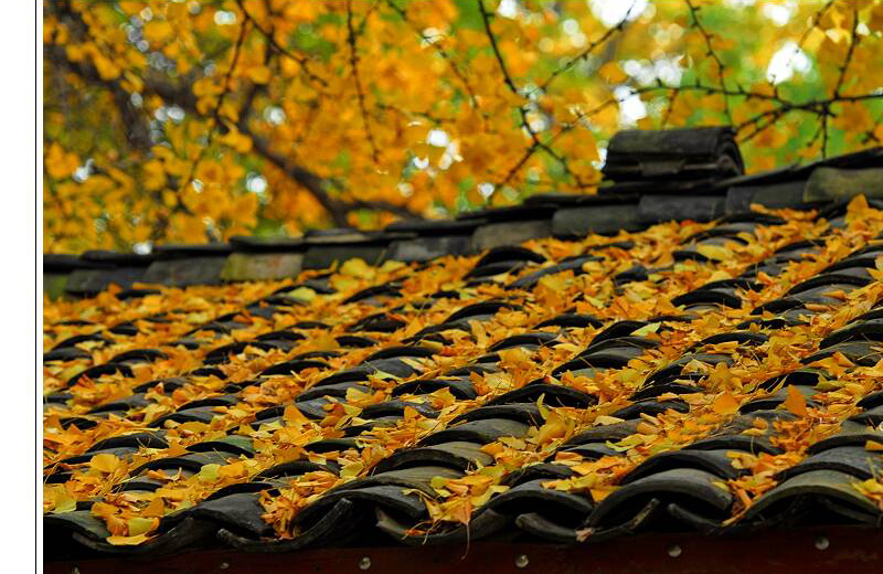 清晨,陽光透過樹葉縫隙投下美麗的斑駁光影,整個村莊都掩映在一片金黃中。微風(fēng)吹過,黃葉在空中翻滾飄舞,隨后又厚厚鋪滿房頂、屋頭、小巷、田埂,鉆進(jìn)石頭縫隙,落入房檐深處……順著村間小路繞行,一棵棵古銀杏樹像優(yōu)雅的舞者一般,在風(fēng)中搖曳,婀娜多姿。千百年來,村子里的居民就生活在這金黃色的的秘境里,過著溫馨、和諧的日子……