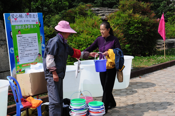 與一般的墓園不同,金寶山主打生命公園,金寶山里山林蔥郁,杜鵑紅艷,柳絲吐絮,數(shù)千只七彩的風(fēng)車插在風(fēng)景秀麗的園區(qū)道路兩旁,給公園添上了絢麗的動(dòng)感;古人謂清明“萬(wàn)物生長(zhǎng)時(shí),皆清潔而明凈,故謂之清明。”為讓人們?cè)谇迕鳚崈舻沫h(huán)境中祭拜親人,金寶山特意準(zhǔn)備了數(shù)萬(wàn)小水桶和小毛巾在十多個(gè)點(diǎn)擺放,為客戶擦拭墓碑提供了直接的便利;還有民族歌舞優(yōu)雅的獻(xiàn)唱和舞姿,精心編輯的中國(guó)古代百俗圖文鑒賞,以及贈(zèng)送給客戶的精美禮品……這些,都傳達(dá)出充滿陽(yáng)光與活力的生命公園的與眾不同之處,使客戶體驗(yàn)過(guò)節(jié)的心情,打造綠色、清潔、美好環(huán)境,度過(guò)溫情、美好的節(jié)日。因?yàn)檫@里園林化的公園環(huán)境和個(gè)性化的貼心服務(wù),客戶的反映很好。市民王先生說(shuō):“園區(qū)里清潔安靜,環(huán)境清幽,路旁還插著七彩的風(fēng)車,陽(yáng)光、溫馨,這是我第一次看到環(huán)境這么好的墓園,就像置身于公園之中,最主要的是小水桶和毛巾免費(fèi)提供讓我們清潔墓碑更加方便。”他認(rèn)為這是清明節(jié)重要的戶外形式,對(duì)綠色生活、文明祭掃具有比較積極的作用,為城市的文明作出了貢獻(xiàn)。