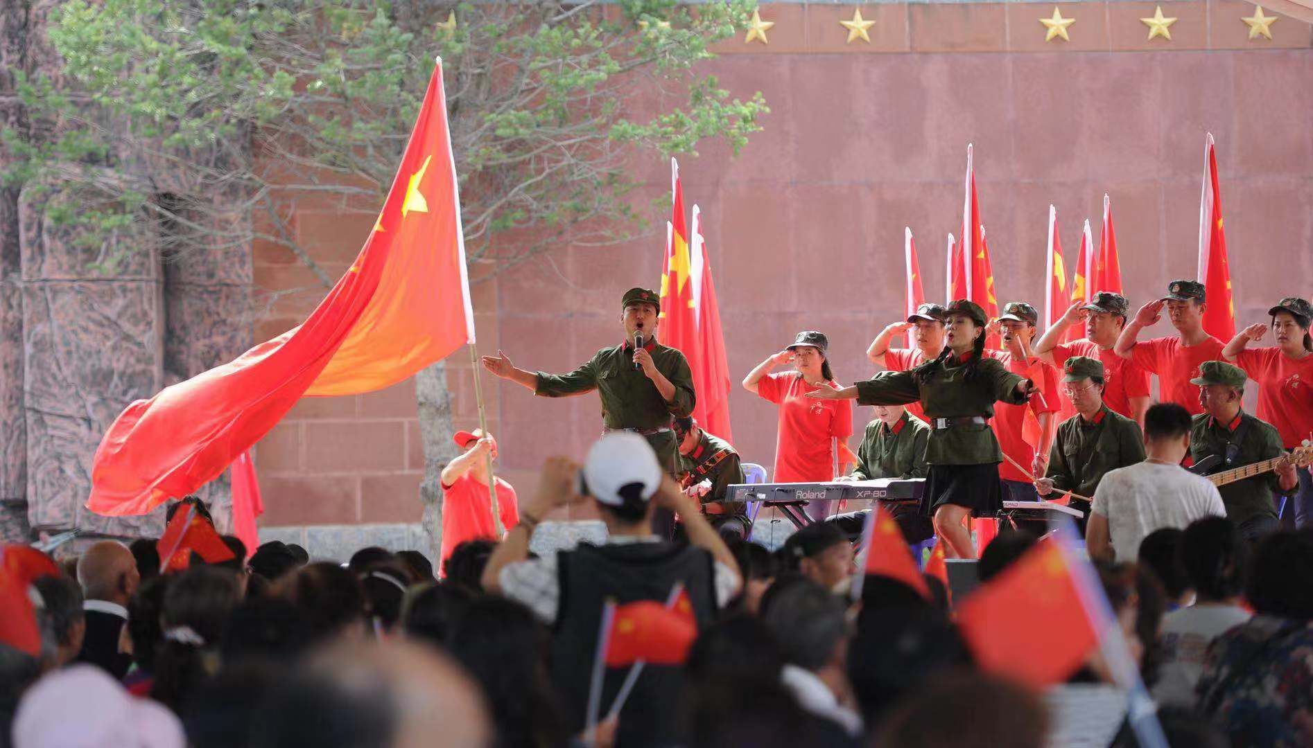 在忠魂園入口的石階上,89歲的王希維老爺爺停下休息片刻。在老伴的陪伴下又步行到活動區(qū)等候參加此次主題紀念活動。“金寶山今年做的這個活動非常好,這些歌曲唱起來感覺非常親切,我們很感動,我都流淚了。當年,我跟隨陳賡將軍部隊從江西來到云南,一直在軍隊機關(guān)工作,因為沒有在前方?jīng)_鋒,所以沒有為國家做出更多貢獻,我感覺很慚愧。但是我們黨、國家、領(lǐng)導以人民為中心,一直對我們老一代很關(guān)心、很愛護。參加此次活動,也讓我回憶和感受到了當年那種信心百倍、斗志昂揚,抱著為祖國而獻身的堅強決心和堅定信念。”說完,王希維爺爺輕輕擦拭了一下眼角的淚水,他認為此次活動既傳承紅色革命精神,弘揚時代主旋律,又能教育后代切實擔負起時代賦予的使命。