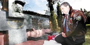 “駝峰天使”黃歡笑的墓,在金寶山“藝術(shù)名人苑”左下側(cè),在蒼翠的松柏下,顯得靜謐而幽雅,在這里,記者巧遇了正在拜祭母親的高德敏和美國“飛虎隊”成員史蒂芬·庫賽克的兒子迭戈·庫賽克。
