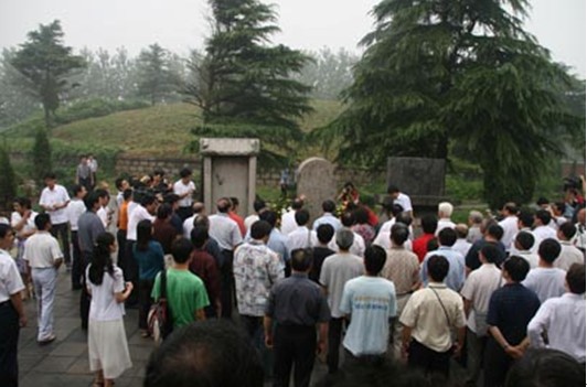 荀子墓位于臨沂市蒼山縣蘭陵鎮(zhèn)東南約一公里處,蒼山縣位于蘇魯交界處、沂蒙山區(qū)南緣,素有“中國(guó)大蒜之鄉(xiāng)”、“中國(guó)民間藝術(shù)之鄉(xiāng)”之美譽(yù)。過去,我只知道荀子葬在蘭陵,但很少把蘭陵與臨沂與蒼山聯(lián)系起來。蘭陵給我留下美好的印象,更主要是有唐朝大詩人李白在《客中行》中所描述的:“蘭陵美酒郁金香,玉碗盛來琥珀光。但使主人能醉客,不知何處是他鄉(xiāng)。”我們到達(dá)荀子墓時(shí),沒想到縣里、鄉(xiāng)鎮(zhèn)的十余位同志已經(jīng)等在那里。下車寒暄后,頂著烈日,大家一邊擦著汗,一邊聽女講解員在介紹荀子以及荀子墓的情況。也許是由于緊張的緣故,也許是平時(shí)來這里的人太少的緣故,這位女講解員的知識(shí)儲(chǔ)備顯然不足,介紹起來磕磕絆絆。我寬慰她說,沒關(guān)系,別緊張,她便越發(fā)緊張了。后來我才知道,我來的時(shí)候,馮君已向基層同志介紹說,我是研究荀子的專家。專家實(shí)在是不敢當(dāng),但當(dāng)我聽完介紹后,我還是把荀子與孔孟思想的關(guān)系,荀子與中國(guó)傳統(tǒng)文化的關(guān)系簡(jiǎn)略地向周圍的人做了介紹,這時(shí),我自己儼然成了一名解說員。天接近中午,陽光依然灼熱,四周的莊稼無力地耷拉著葉子,顯得疲憊而無奈。我提出隨便走走看看,順便照些照片。當(dāng)我環(huán)顧荀子墓四周,再想想近在咫尺的曲阜“三孔”,感覺歷史似乎太不公平,同為一代思想大家,身后境遇竟如此不同。荀子墓周圍田野空曠,花草瘋長(zhǎng),顯然平時(shí)很少打理,荀子默默地躺在那里,荒涼、寂寞、孤單。