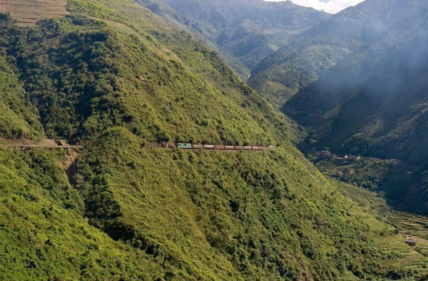 插圖2:在群山中蜿蜒爬坡的米軌火車(chē)