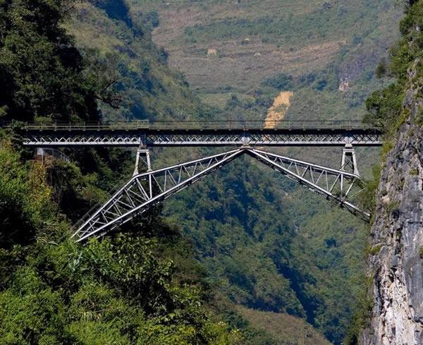插圖16:白寨大橋是滇越鐵路上最高的橋梁,二戰(zhàn)抗日戰(zhàn)爭(zhēng)期間,是日軍轟炸的重點(diǎn),原橋在抗戰(zhàn)中拆毀,此橋原地重建,樣式已與原橋不同。